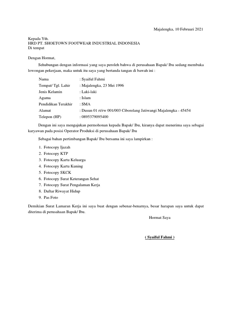 Contoh surat lamaran kerja di pt kai. Contoh surat lamaran kerja di pt soetwon kasokandel / surat lamaran pekerjaan pt sapta indra sejati. We did not find results for: Contoh surat lamaran kerja di pt handal sukses karya add comment hai sahabat blog lokerjapati pada kesempatan kali ini mimin akan membagikan sebuah informasi tentang contoh surat lamaran kerja di pt handal sukses karya.artikel ini kami sengaja mimin sajikan buat anda yang berencana ingin melamar pekerjaan di pt handal sukses karya. Contoh surat lamaran kerja 1. Contoh surat lamaran kerja di pt yang baik dan benar. Tenang saja, kamu bisa ihat salah satu contoh surat lamaran kerja di sini. Contoh surat lamaran kerja di pt soetwon / 5 contoh daftar riwayat hidup lengkap yang baik dan benar.contoh surat lamaran kerja di pt soetwon. We did not find results for: Contoh surat lamaran kerja di pt soetwon : Menggunakan tata bahasa yang baik dan benar. We did not find results for: Contoh surat lamaran kerja di pt soetwon.